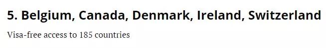 加拿大以185个免签国位列第五