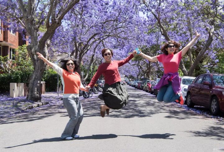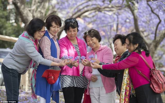 蓝花楹盛开的季节,街上围观了大量的中国游客,她们嬉笑打闹,肆意占道…